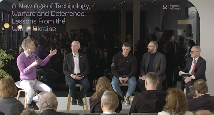 俄乌冲突爆发一周年时,帕兰提尔公司举行了“从乌克兰战争中汲取的教训”主题活动。乌克兰副总理兼数字化转型部长米哈伊洛·费多罗夫(右三)是活动座上宾。